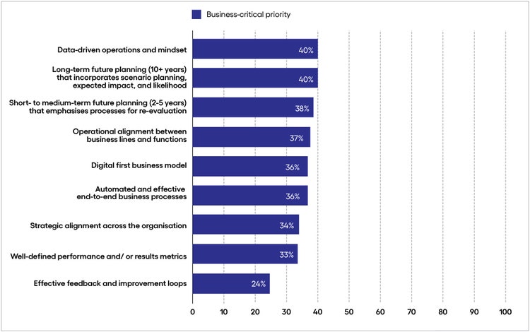 <p><span class="small">Response base: 250 senior retail executives&nbsp;<br> Source: Economist Impact Survey 2022<br> <span data-rte-class="rte-temp">Fig 1</span></span></p> <h5>What they're good at</h5> <ul> <li><b>Creating a robust technology foundation.</b> Retailers are investing heavily in Internet of Things (IoT), cloud computing and big data analytics. For many, the focus is on the back office, as they look to manage their supply chains, boost operational agility in an uncertain environment and analyze financials.<br> <br> Additionally, and with industry-wide recognition that staying close to customers is their life blood, retailers are increasingly leveraging these technologies to help them understand customer journeys and create new ways of personalizing experiences.</li> </ul> <h5>Long way to go</h5> <ul> <li><b>Making good use of all the data they collect.</b> For leaders, then, understanding what to do with data generated by new technologies is fundamental to their success. From mapping front-end customer journeys to smoothing out complex supply chains, the sheer amount of data available is vast. Creating and organizing it is one thing but using it to tactical and strategic advantage in an ever more competitive environment is another issue entirely.&nbsp;</li> </ul> <h5>The importance of bridging the gap</h5> <ul> <li><b>Technology convergence is key to meeting consumer expectations.</b> None of the technologies that make up retailers’ shopping lists will solve all the industry’s woes alone. This is where the convergence of a number of different technologies collectively brings answers. For example, IoT, artificial intelligence (AI), cloud and other technologies combined can enable retailers to create smart shopping environments and personalized services.<br> <br> Meanwhile, advanced cloud capabilities combined with machine learning ensure digital shoppers find the bargains they’re looking for, or the item best suited to their needs. This is a vital step as consumer expectations around both digital and physical shopping environments grow.</li> </ul> <h4>Data is driving long-term planning</h4> <p><i>Respondents were asked to what extent their company’s strategy prioritized the following areas. (Percent of respondents saying business-critical or medium/high priority)</i></p>