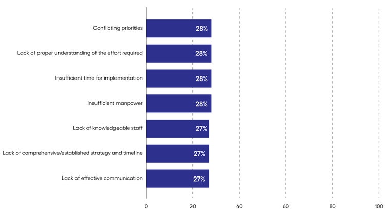 <p><span class="small">Response base: 2,000 senior executives<br> Source: Economist Impact Survey 2022<br> Figure 1</span></p> <p>Engaged, motivated and satisfied employees are key to making a business future-ready. However, that belief doesn’t show up on a list of business-critical priorities for half of respondents. In order to meet the needs of the modern business, particularly as new complex technologies fundamentally change the world of work, it’s time to focus on talent and the employee experience as vital components of any business strategy.</p> <h4>The real value of tech initiatives</h4> <p>In the race to scale and maintain competitiveness, companies have done a great job of focusing on the “how.” Study respondents embraced a range of <a href="https://www.cognizant.com/us/en/insights/perspectives/future-tech-investments-must-empower-workers-wf1140984" target="_blank" rel="noopener noreferrer">technologies</a>; more than half have adopted or plan to adopt every technology system or tool listed. But when it comes to the purpose of digital transformation efforts—such as streamlining processes, cutting costs and innovating business models—there’s a human element that’s tied to enhancing the employee experience.</p> <p>For example, streamlining processes through automation frees up time and energy that employees can dedicate to higher order activities like decision making. Cutting costs takes pressure out of the system and improves organizational harmony. Within a more cohesive corporate environment, teams can collaborate on value-added initiatives that produce net-new offerings that better serve customer interests, power experiences and meet their demands.</p> <p>In short, a primary value of investing in technology is how these initiatives impact employees. This connection between technology and the promise it holds for the workforce should be clear in both corporate strategy and prioritized investments.</p> <p>In the study, however, this connection isn’t clear and may prove to be the next critical business challenge of our time. Executives reported two of the top challenges they face today are a lack of sufficient labor and a lack of knowledgeable staff (see Figure 2).</p> <p>The research also reveals that these twin challenges are common among businesses of all sizes. It all points toward an accelerating competition for skills and a war for talent that hinges on not just compensation packages, perks and benefits, but also on employee satisfaction itself.</p> <h4>Talent challenges plague the modern business</h4> <p><i>Respondents were asked what the most significant challenges were when implementing new processes, services and technologies in the past year. (Percentage of respondents selecting each challenge. Respondents were allowed to select up to five challenges)</i><br> </p>