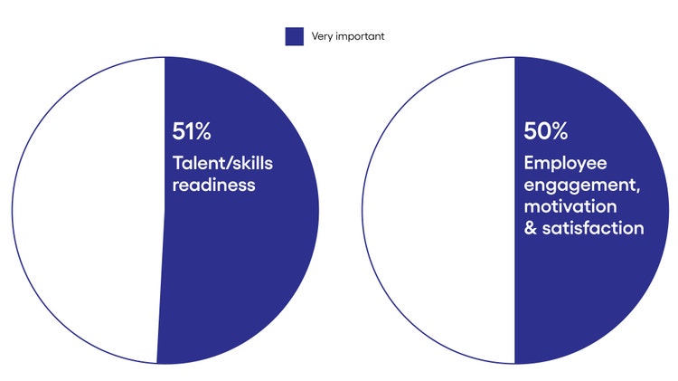 <p><span class="small">Response base: 2,000 senior executives<br> Source: Economist Impact Survey 2022<br> Figure 2</span></p> <h4>Fortifying all the links in the chain</h4> <p>To realize the full return on value of their technology investments, businesses will need the skills required to implement, maintain and optimize these technology investments.</p> <p>Yet the study shows that 46% of leaders do not fully believe they have access to those skills, which threatens to leave much of the promise of these advanced technologies unattained. And while business leaders show some understanding that employees are direct contributors to effective and efficient business operations, just half of respondents see employee engagement, motivation and satisfaction as critical to being a modern, future-ready business (see Figure 3).</p> <p>This is a disappointing reminder that many leaders may hold reductive views of employees as simply costs to the business rather than the drivers of business operations. And it reinforces the disconnect among technology investment, employees and business impact because it undervalues employees as an input to business success. Currently, the human element is missing from this powerful equation, at scale.</p> <h4>Just half of leaders see the connection between employees and business success</h4> <p><i>Respondents were asked how important the following topics are to being a modern business today. (Percentage of respondents selecting the option ‘very important’) </i><br> </p>